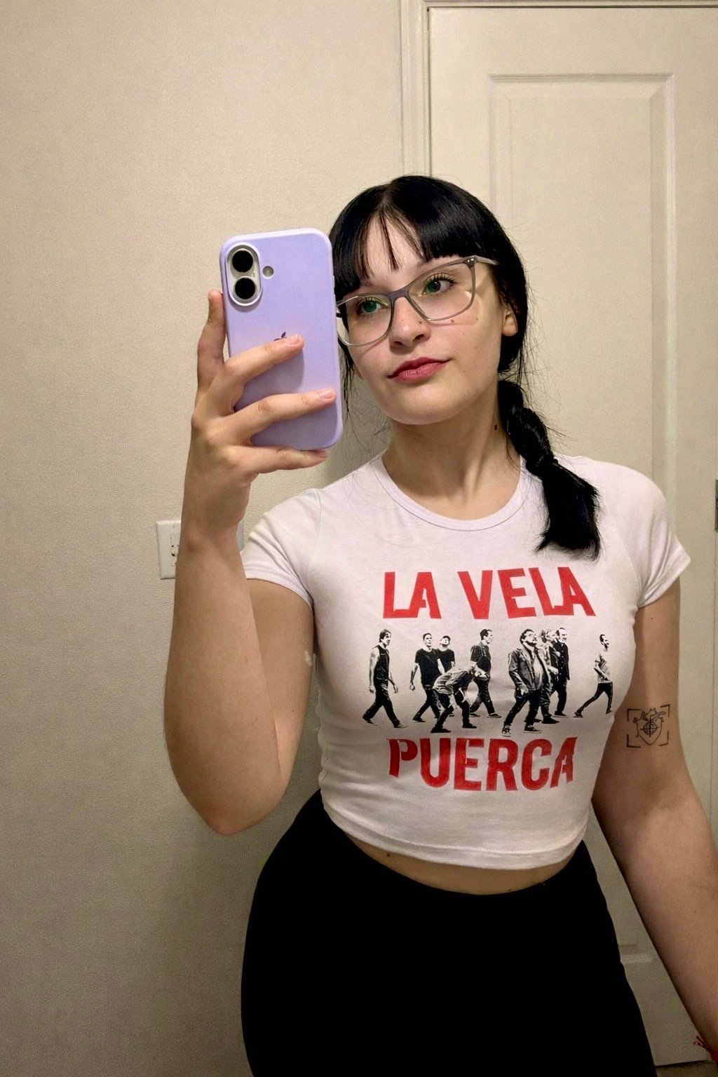 La Vela Puerca rojo y negro, inspirada en la energía del rock uruguayo. Cómoda y versátil, ideal para looks urbanos con actitud y personalidad.