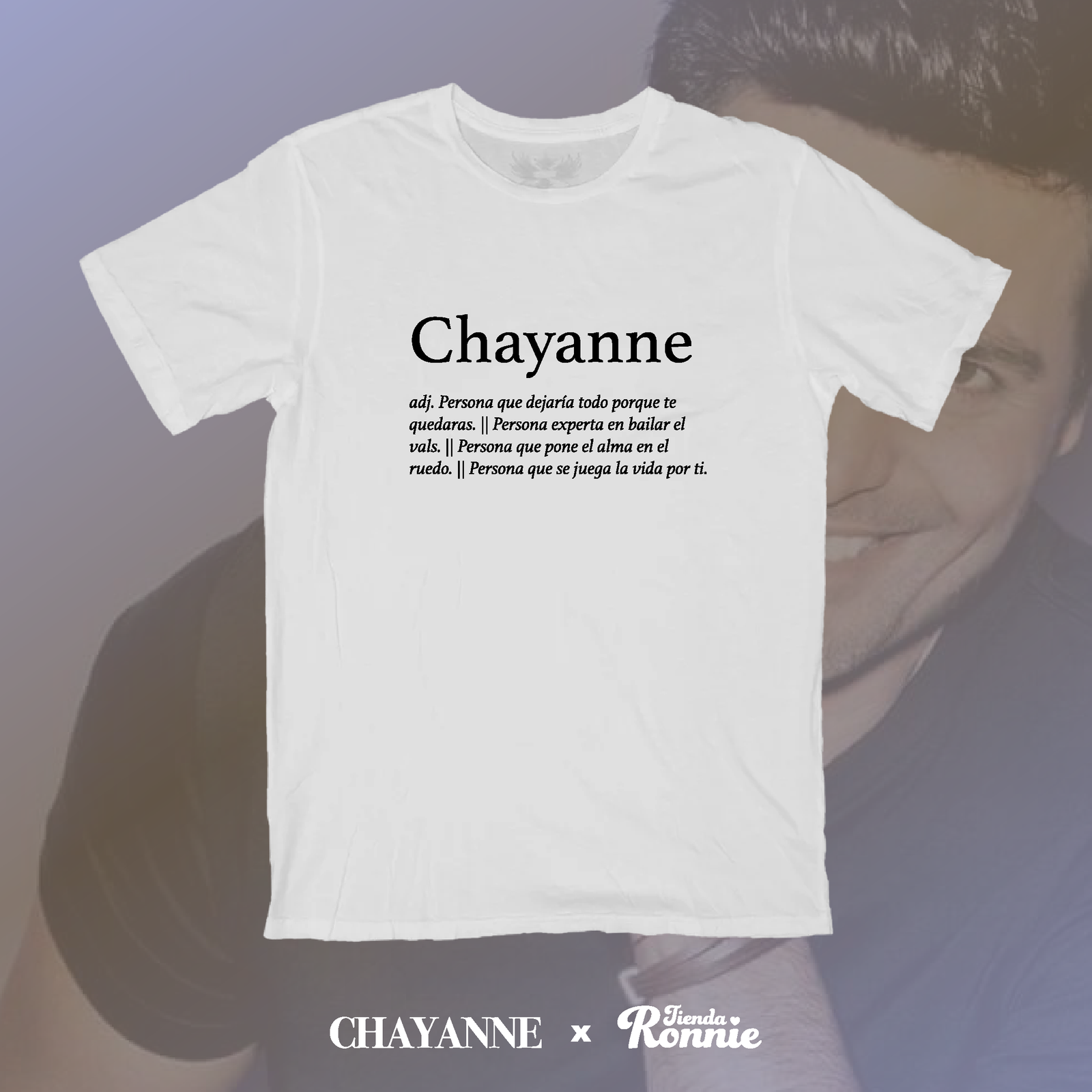 Inspirada en frases que ya son parte del imaginario colectivo, la estampa reúne todo lo que significa ser chayanne: la persona que dejaría todo porque te quedaras, la que baila el vals con elegancia natural, la que pone el alma en el ruedo y la que se juega la vida por quien quiere. No hace falta contexto ni explicación adicional. Quien la lee, la entiende. Quien la entiende, sonríe.
